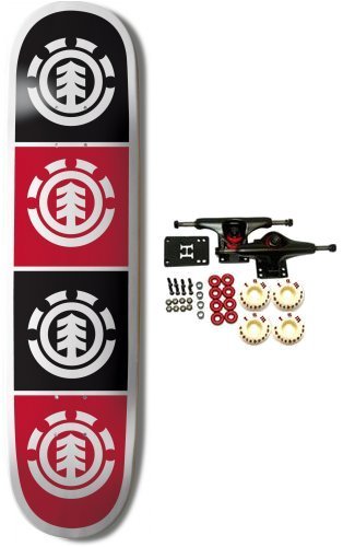 Element skateboards Quadrant COMPLETE skateboard. Ready to roll 8 X 31.75 inches . No assembly required. Base price includes bullet trucks and spitfire or element wheels